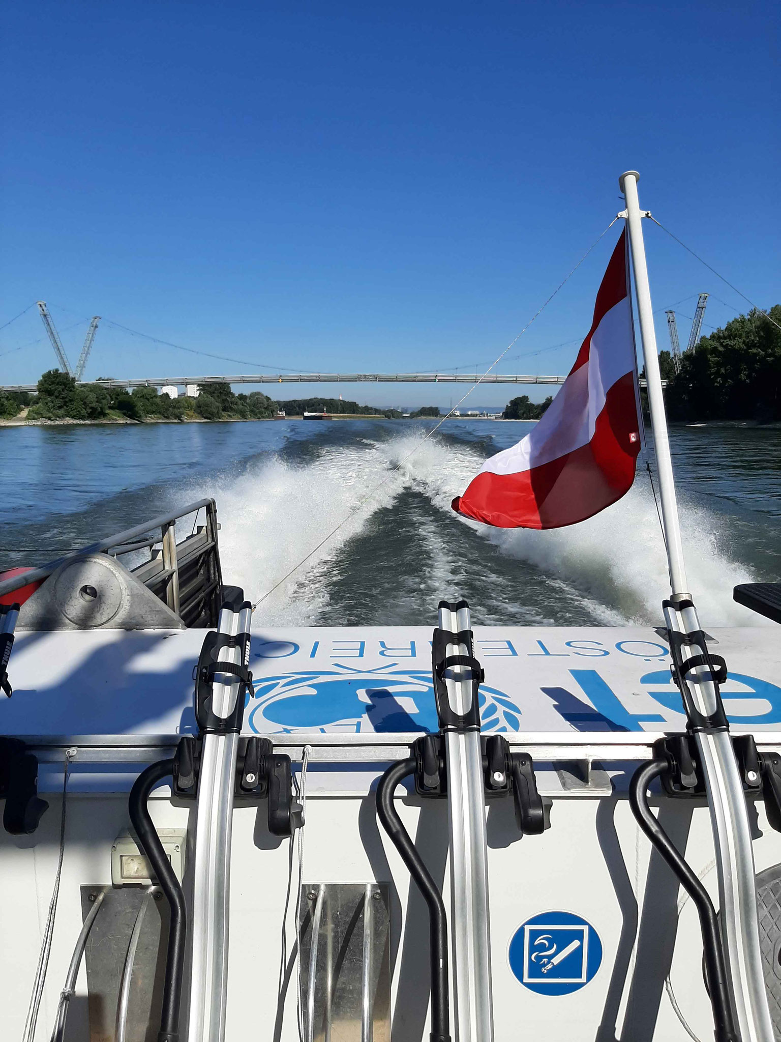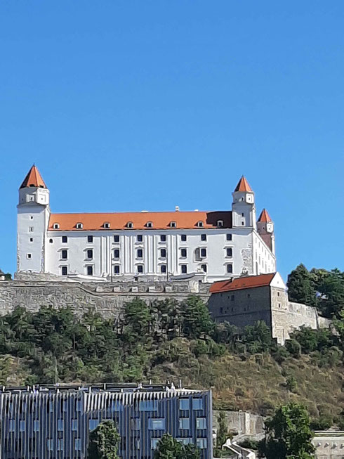 Leberkäsjause ließen wir uns im Bus schmecken da der Zeitplan sehr straff war. Um 09:30 bestiegen wir den Twin City Liner, nach anfänglich ruhiger Ausfahrt aus Wien spürten wir ab der Stadtgrenze seine 4.000 PS. Mit 70 km/h glitten wir über die Donau Bratislava entgegen, Erlebnis pur!