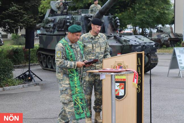 Beim Traditionstag in der Mistelbacher Bolfras-Kaserne wurde nicht nur der neue AAB3-Marsch uraufgeführt, auch eine symbolische „Hochzeit“ zwischen dem Aufklärungs- und Artilleriebataillon 3 und Traditionsverband wurde gefeiert.